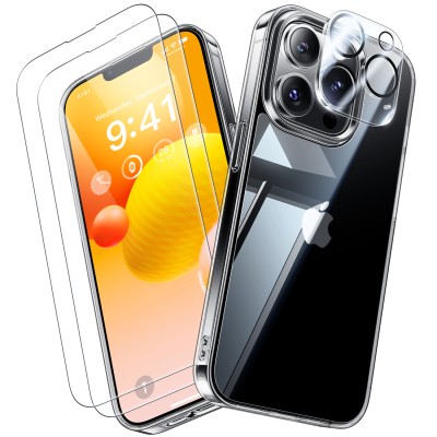 OPXYL Diamond Clear for iPhone 13 Pro Case with 2X Screen Protector + 2X Camera Lens Protector, Clear